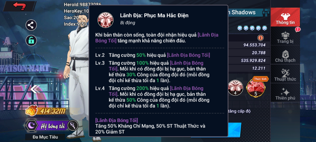 Khi bản thân còn sống toàn đội nhận hiệu quả lãnh địa bóng tối, tăng mạnh khả năng chiến đấu