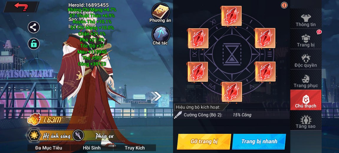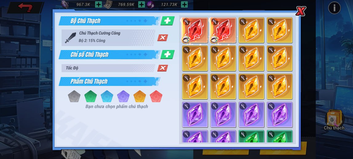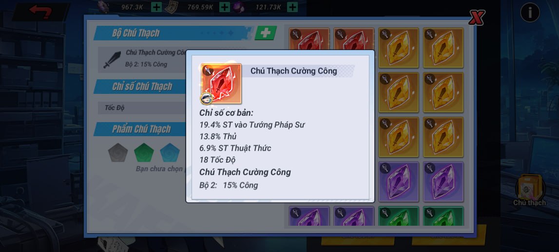 - Có thể lựa chọn Chú Thạch phù hợp để trang bị cho thuật sư nếu đủ điều kiện sẽ nhận thêm chỉ số