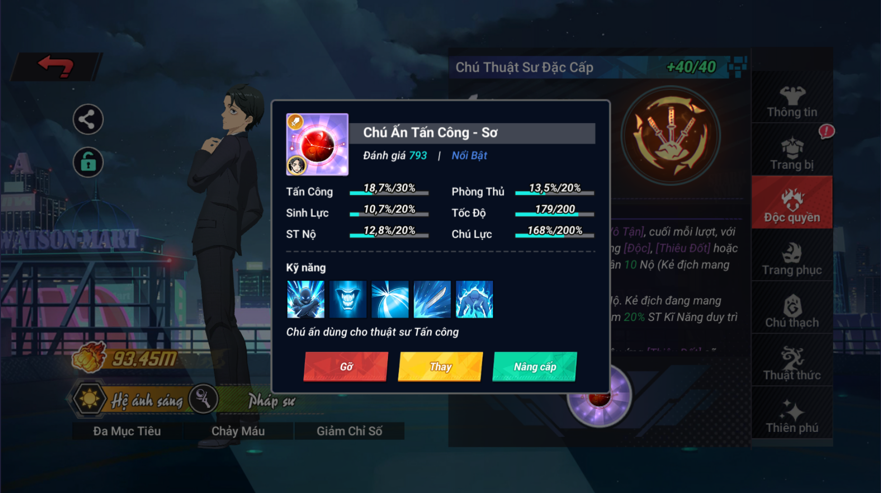 - Cấp độ Độc Quyền của thuật sư đạt 40 mới có thể trang bị Chú Ấn
