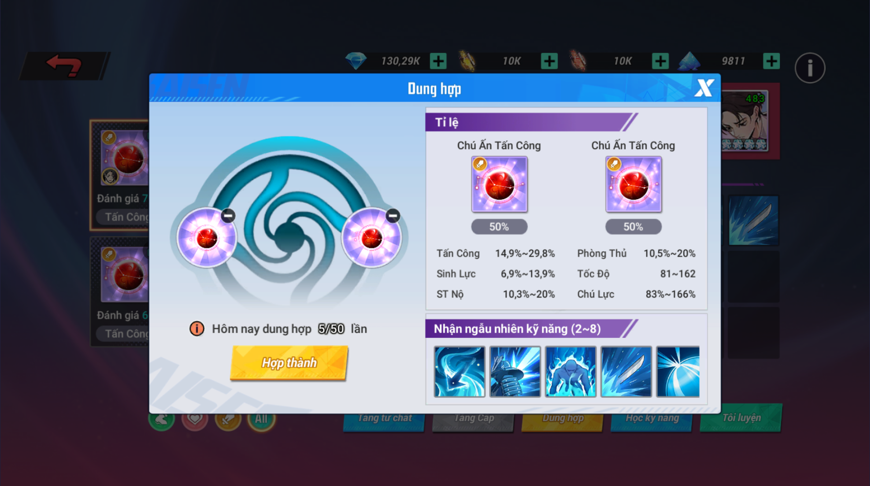 - Số lượng kĩ năng trên chú ấn cũng sẽ được tái tạo ngẫu nhiên