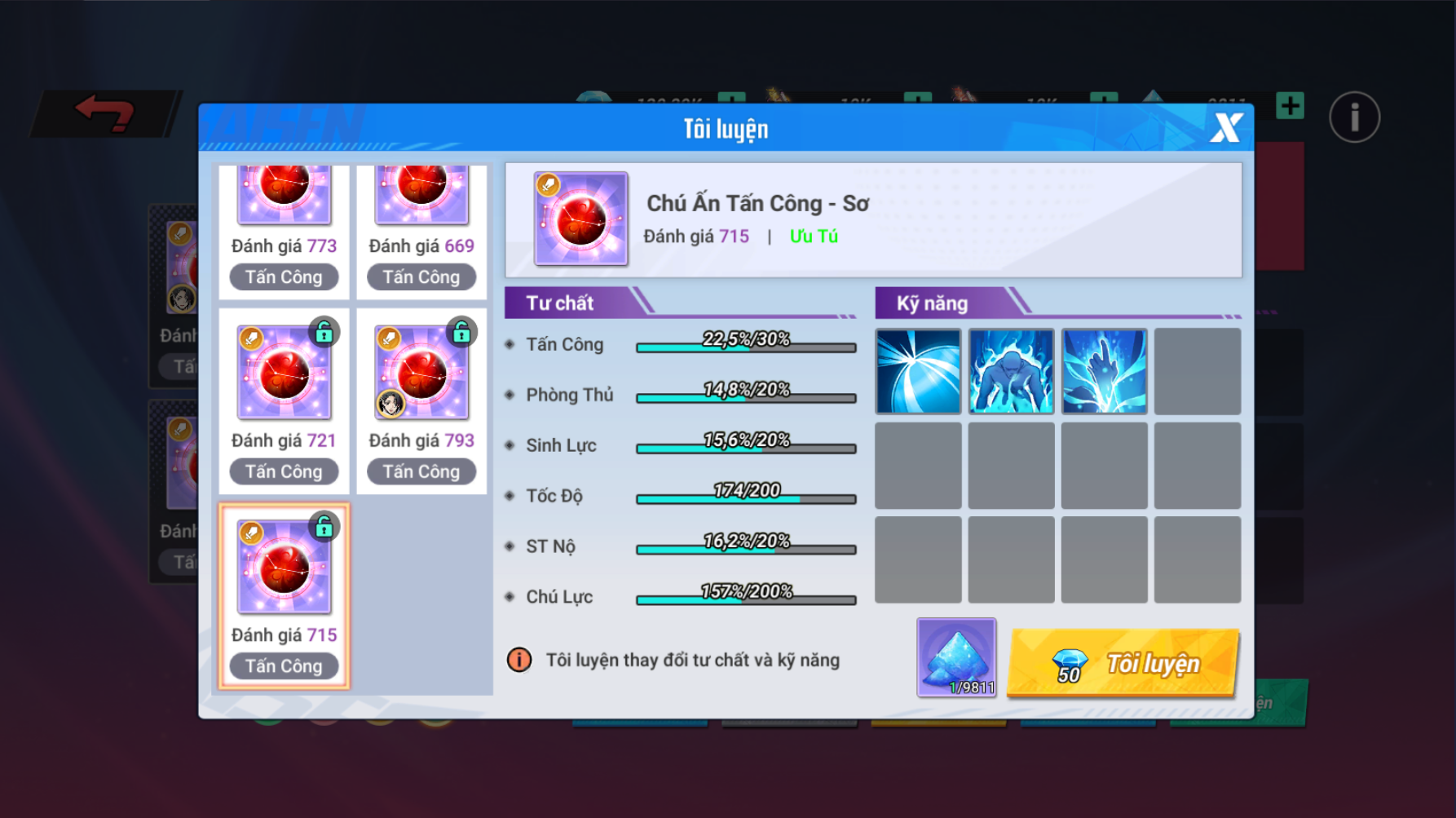 - Khi Tôi Luyện tư chất cơ bản và tư chất Chú Lực sẽ được reset ngẫu nhiên.