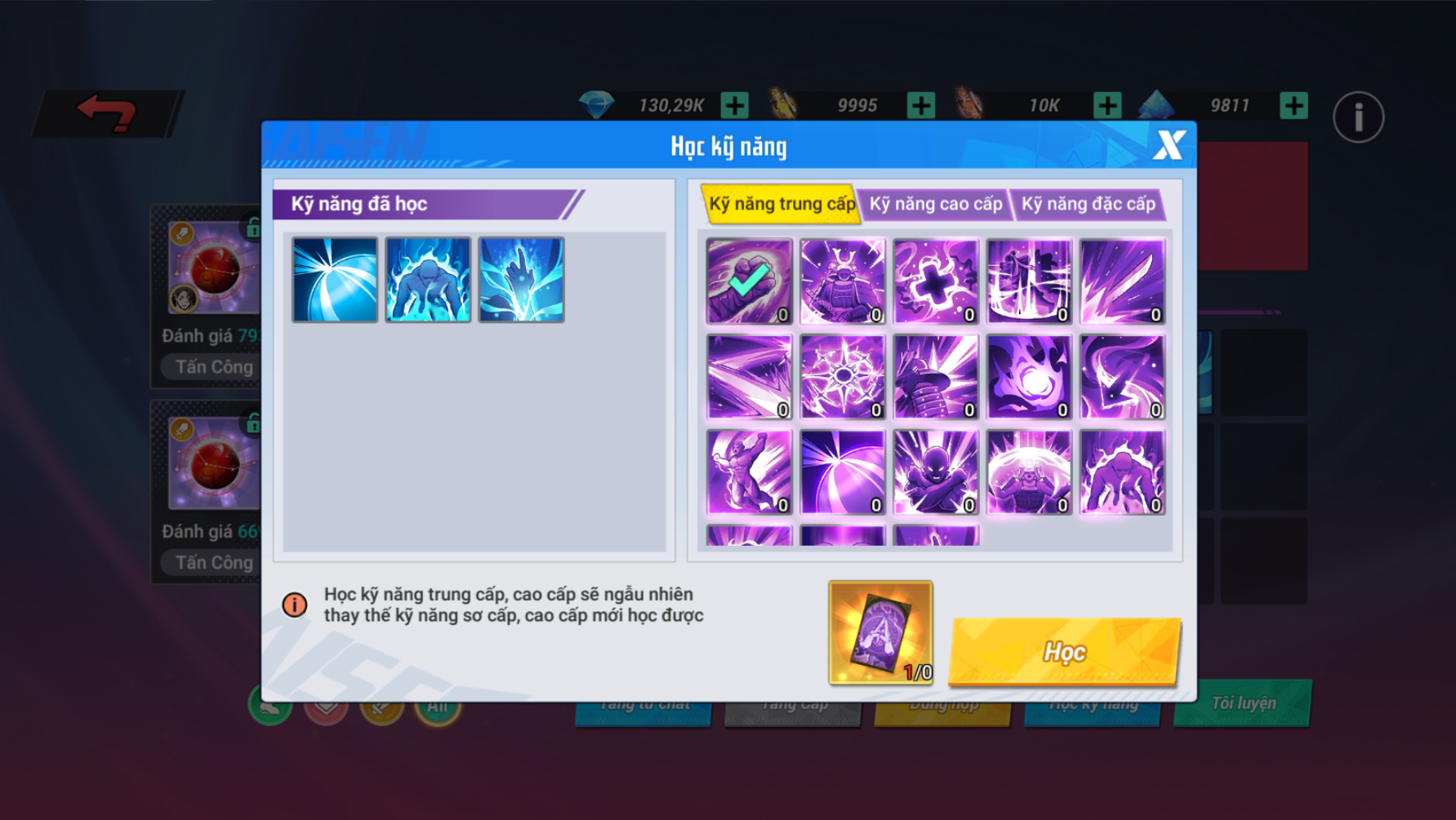 - Khi học kỹ năng mới sẽ thay thế kỹ năng ngẫu nhiên trước đó, học kỹ năng mới sẽ không có tác dụng mở thêm ô kỹ năng mới.